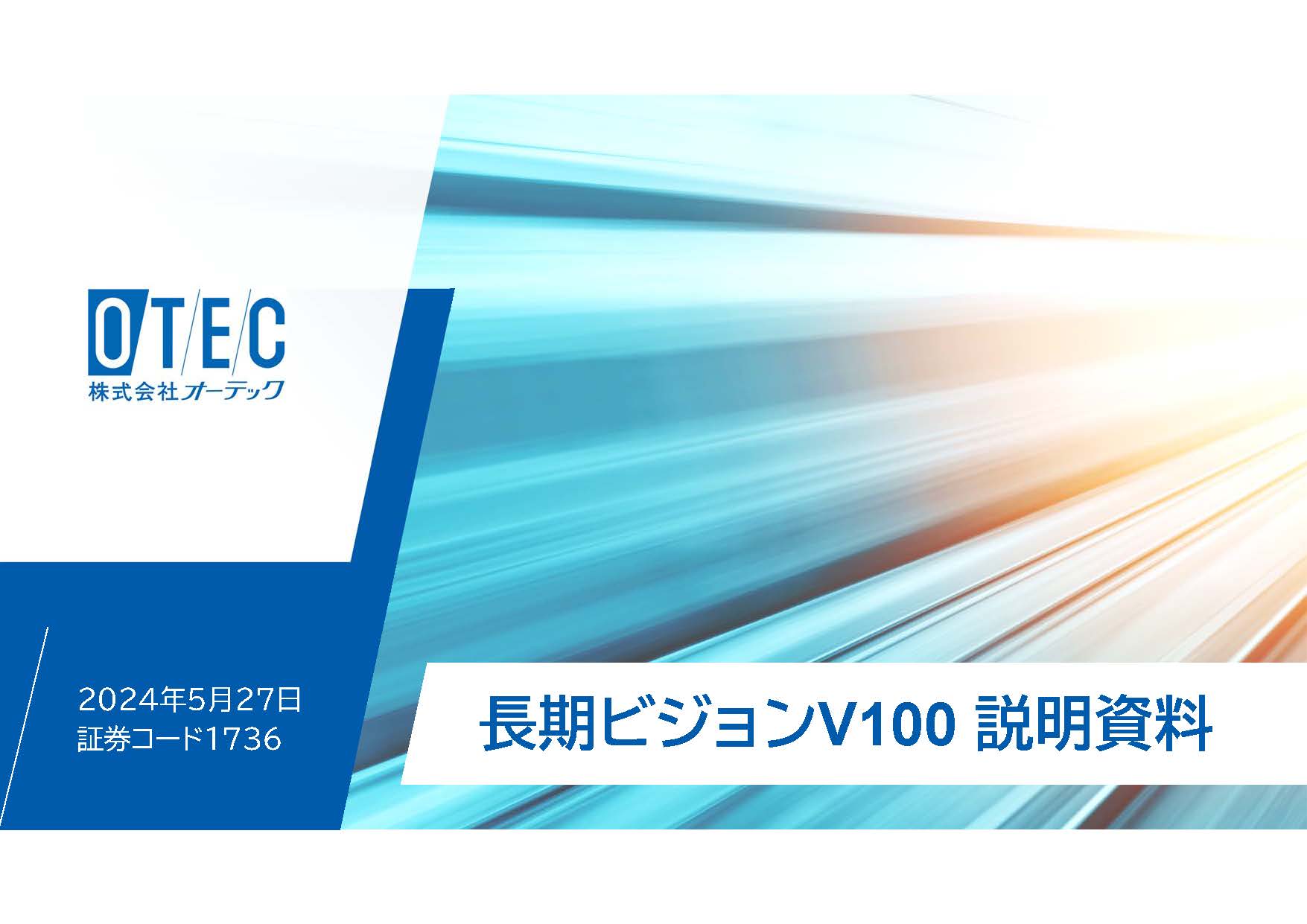 当社は、本日開催の取締役会において、2024年3月から2034年3月までの10年間を対象にした長期ビジョン「長期ビジョンV100」を策定しましたので、お知らせします。